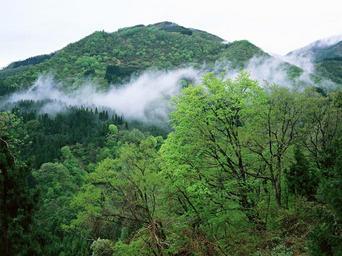Keywords: mountain tree grass fir mist sunset outdoor hill sunlight fog natural highland green floral spring travel serenity vivid view sunrise yellow leaf majestic scenery summer light morning sun sunshine season forest