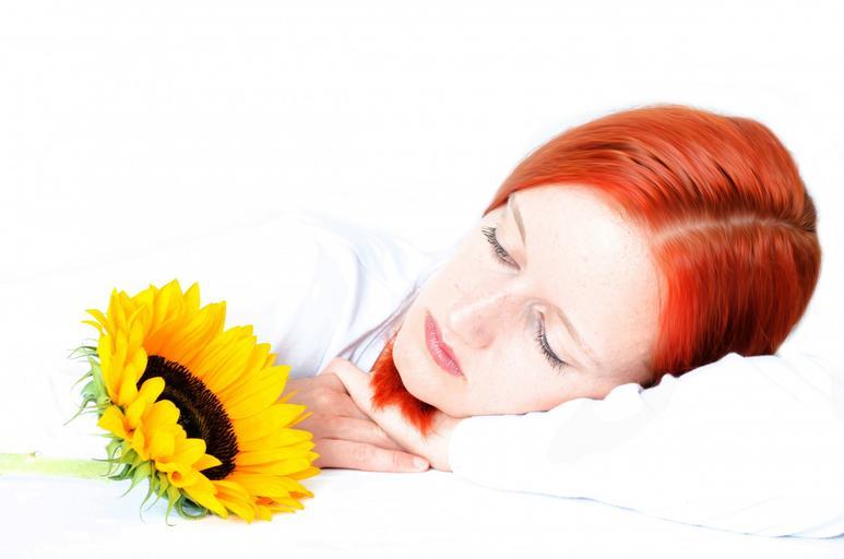 Keywords: People Young Woman Female Face Cute Lady Beautiful Caucasian Girl Flower Sleeping