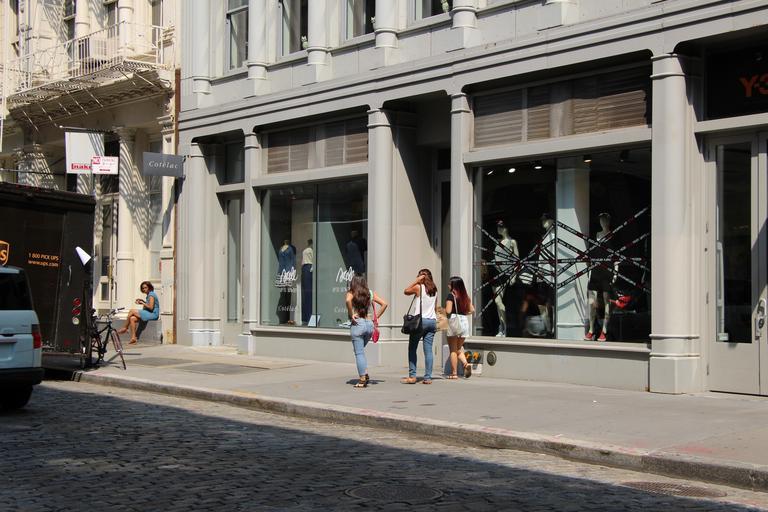 Keywords: fashion model woman street summer spring urban smiling bag dress girl sunglasses glasses pose posing cool stripes walk outdoor cars hair brown cute belt clothing gorgeous town step soho new york