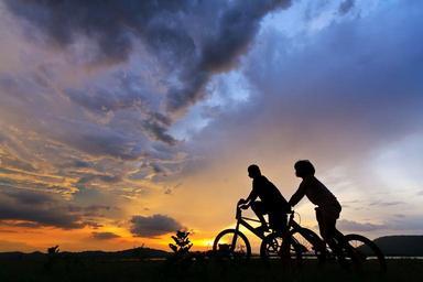 Keywords: active adult adventure beautiful beauty bicycle bike blue coast color couple cycling sunset free photos