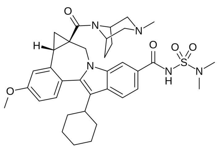 Keywords: Beclabuvir.svg Chemical structure of w beclabuvir Own 20 07 21 March 2015 UTC Ed Edgar181 Cyclohexane derivatives Cyclopropane derivatives NS5B inhibitors Indoles Methyl ethers Sulfamides