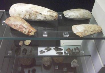 Keywords: BedfordMuseumMesolithicDisplay.JPG en A display of Mesolithic finds in Bedford Museum Top Shelf polished flint and chert axes - 18 - from Great Barford 20 - from Kempston 19 - from Biggleswade 21 - from Kimbolton Road Bedford; Middle Shelf - 33 - scrapers and other flake tools 32 - arrowheads 34 - pygmy flints; Bottom Shelf - 38 - limestone macehead 37 - mullers or hammerstones 36 - potboilers to heat cooking water own Simon Speed 2010-09-28 Bedford Museum Bedford Photos by Simon Speed Mesolithic artefacts |