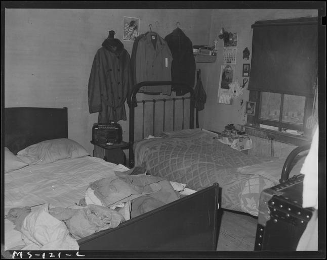 | Keywords: Bedroom in home of Mrs. Eloise Smith, widow of miner. Mrs. Smith lives in company housing project. Industrial... - NARA - 540286.tif Scope and content General notes 540286 Local identifier 245-MS-121L Department of the Interior Solid Fuels Administration For War 04/19/1943 - 06/30/1947 NARA-Author Lee Russell 1903-1986 Photographer 2489414 <br /> Still Picture Records Section Special Media Archives Services Division NWCS-S National Archives at College Park 8601 Adelphi Road College Park MD 20740-6001 1946-06-13 Record group Record Group 245 Records of the Solid Fuels Administration for War 1937 - 1948 Record group ARC 572 Photographs of the Medical Survey of the Bituminous Coal Industry compiled 1946 - 1947 Series ARC 540230 File unit File unit ARC Variant control numbers NAIL Control Number NWDNS-245-MS-121L yes Other versions <gallery> File Bedroom_in_home_of_Mrs _Eloise_Smith _widow_of_miner _Mrs _Smith_lives_in_company_housing_project _Industrial _-_NARA_-_540286 tif tif File Bedroom_in_home_of_Mrs _Eloise_Smith _widow_of_miner _Mrs _Smith_lives_in_company_housing_project _Industrial _-_NARA_-_540286 jpg jpg </gallery> NARA-cooperation PD-USGov Coal mining in Appalachia NARA TIF images with categorized JPGs |