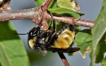 Keywords: bee bumblebee insect insectoid pollinate pollination pollen winged insect flying insect stinging insect sting stinger bee sting nature wildlife branch leaves flora fauna creature animal botany biology entomology arthropod