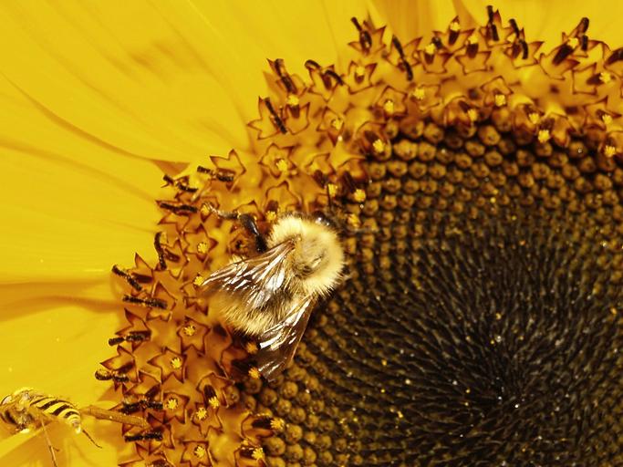 Keywords: bee bumblebee pollinate sunflower