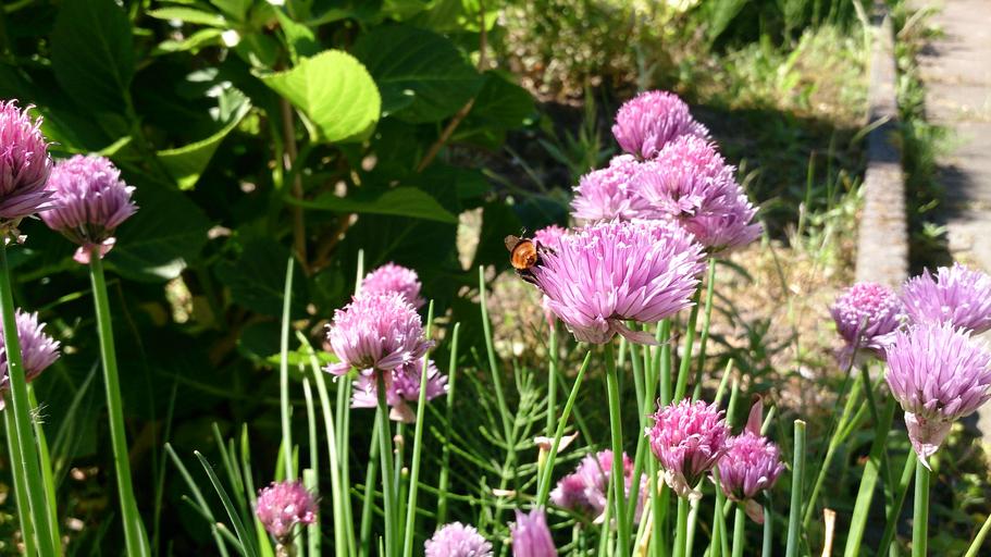 Keywords: bee chive summer nature wasp flower netherlands