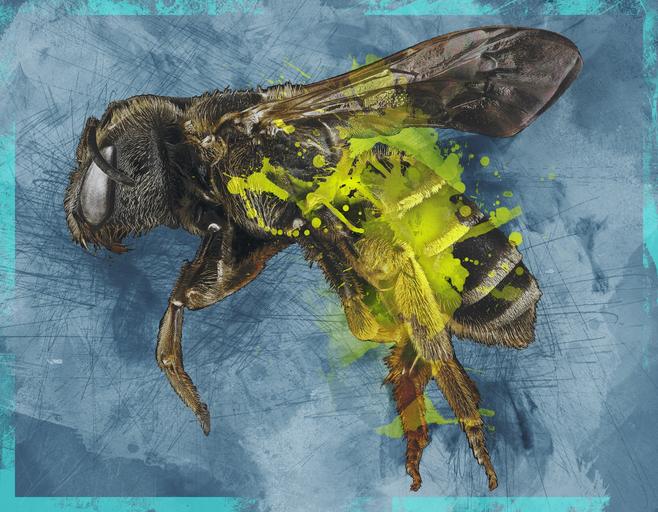 Keywords: bee halictus macro pollinator bug insect wings close up wildlife pollen sting mounted side profile u s geological survey digital painting digital art digital creation