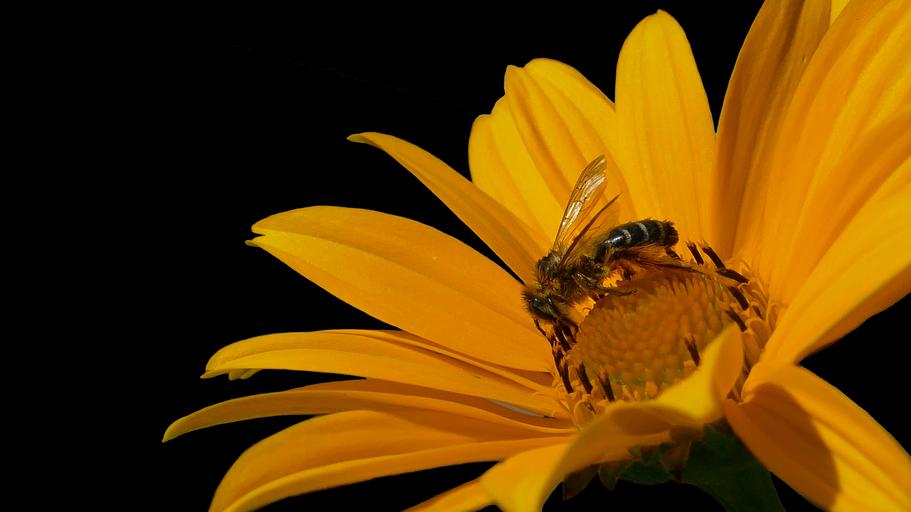 Keywords: bee honey bee bee on yellow flower bee and flower bee on flower released insect pollination close