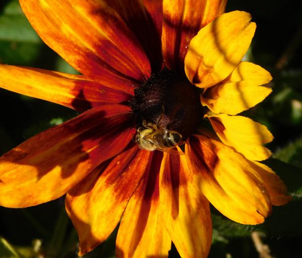 Keywords: bee honey bee insect flower blossom bloom on a flower bee on flower close yellow flower collect pollen collect nectar hard working work diligently