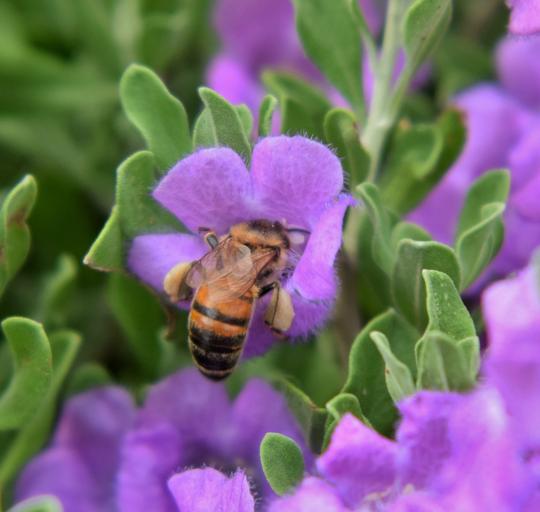 | Keywords: bee honey bee pollen pollinate pollination pollinating beekeeping insect honey stinger sting buzz flowers purple flowers barometer bush sage texas sage silverleaf purple sage figwort petals busy garden nature bug fly flying insect winged insect botany entomology arthropod apis melittology |