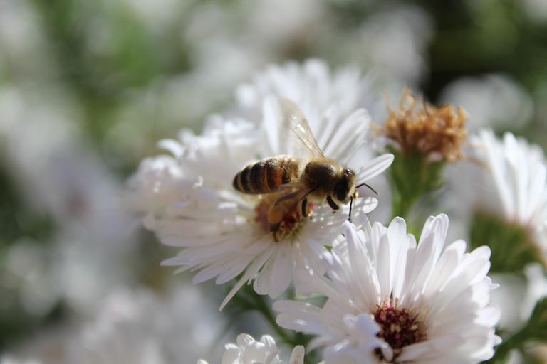 Keywords: bee insect animal plant white flowers close honey bee nature summer