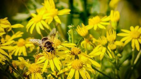 Keywords: bee insect close macro flower honey yellow green animals wildlife fly nature flight insect garden pollination blossom bloom pollen plant collect honey summer nectar honey bee healthy