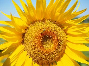 Keywords: bee pollen collect sun flower blossom bloom nectar inflorescence flower basket flower yellow tongue flower tubular flowers helianthus annuus nature plant beautiful sunny colorful bright macro close