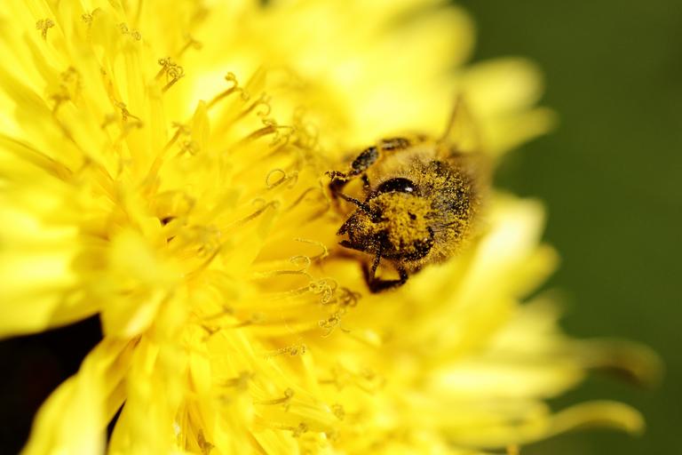 Keywords: bee yellow flower garden insect macro suns yellow flower dandelion foraging field nature summer