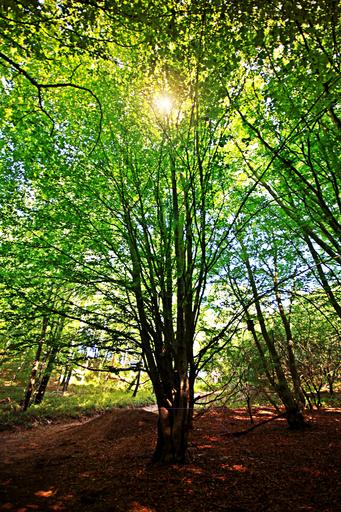 Keywords: beech backlight nature leaves trees green branches ray of sunshine mountain chiaroscuro brightness vegetation sun lush natural light forest tree outdoors outside contrast leaf
