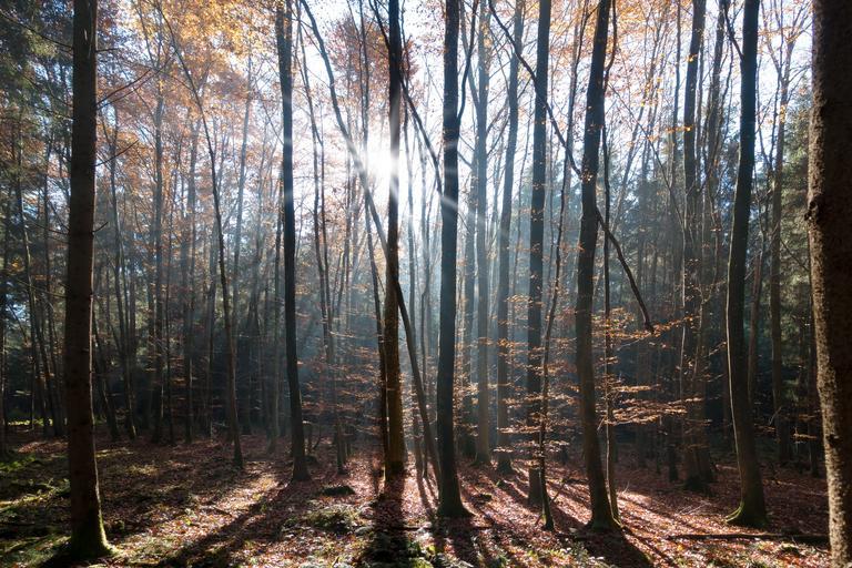 Keywords: beech forest deciduous tree tree nature autumn leaves colorful back light sun rays