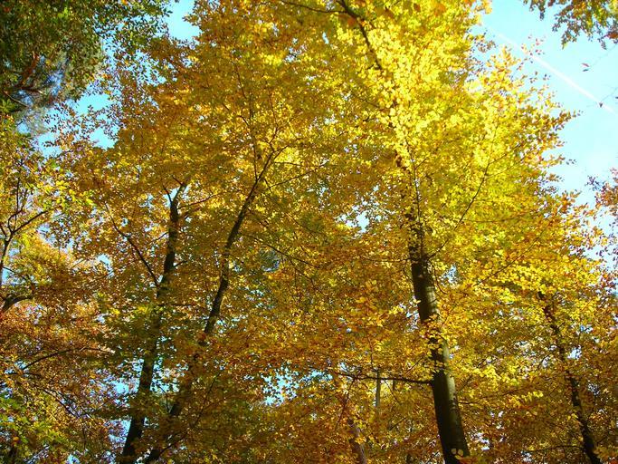 Keywords: beech wood canopy golden october autumn sunny leaves emerge yellow fall color