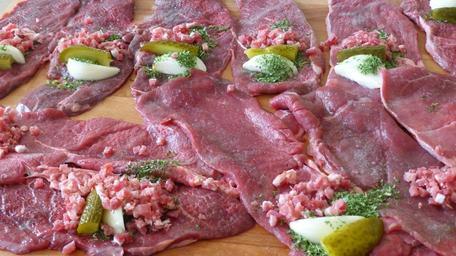 Keywords: beef roulades cook meat recipe beef operation prepare bacon onions food eat raw piece of meat fry roulades red