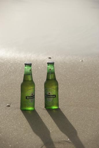 Keywords: beer bottles beer beach sand sun heineken bottle drink thirst green transparent friends clear glass light green light father's day