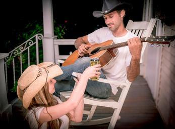 Keywords: beer guitar porch music couple smiling alcohol happiness