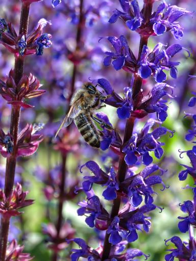 Keywords: bees bee macro flower insect plant purple blue close nature