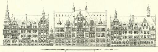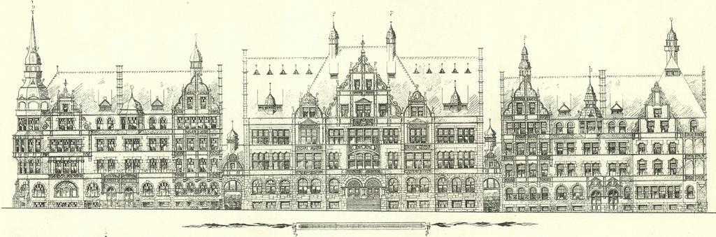 Keywords: Beethovenstrasse, Hannover-Linden, Carl Arend, Architekt, Architektonische Charakterbilder, Jahrgang 3, Tafel 051, Skizze der so nicht zur Ausführung gekommen westlichen Seite mit der Humboldtschule (heute IGS Linden).jpg Oberer Teil der Tafel 51 im III Jahrgang 1902 der Architektonischen Charakterbilder mit einer Architektur-Skizze und einer -Zeichnung unter dem Titel Ausgestaltung der westl Seite der Beethovenstrasse Hannover-Linden Die dann tatsächlich erfolgte Bebauung insbesondere die durch den leitenden Architekten Georg Fröhlich mit Alfred Sasse bis 1901 errichtete Humboldtschule heute Oberstufe der IGS Linden folgte anderen Plänen Wenngleich der Urheber der Zeichnungen dieser Tafel hier mit C Arend signiert hat unten rechts wird der Architekt im Untertitel abweichend mit Karl Arend angegeben Dieses Blatt wurde aufgrund seiner Größe > DIN A3 in zwei Teilen jeweils mit 600 dpi eingescannt und dann mit einem Fotobearbeitungs-Programm wieder zusammengefügt Dabei hat sich gezeigt daß ein Scan mit 600 dpi je nach Scanner offensichtlich unterschiedlich gute Resultate bringt Wir danken für die technische und personelle Unterstützung durch die Angestellten der Firma CopyStork in Hannover Körnerstraße 3 Das originale Blatt wurde dankenswerterweise von Johannes Rappenecker zur Verfügung gestellt um es als Digitalisat über Wikimedia Commons nachhaltig allen Menschen dieser Welt zugänglich zu machen Scan vom Original Bernd Schwabe mit Dank an den Stifter Johannes Rappenecker 1900 Zeichnung 1902 Druck Carl Arend <gallery> File Architektonische Charakterbilder Jahrgang 3 Tafel 051 Ausgestaltung der westl Seite der Beethovenstrasse Hannover-Linden Architekt Karl Arend Carl Arend jpg Vollständige Tafel </gallery> PD-old Documents by Johannes Rappenecker Architektonische Charakterbilder Beethovenstraße Hannover Carl Arend architect 1900 works in Hannover Alte Humboldtschule Linden |