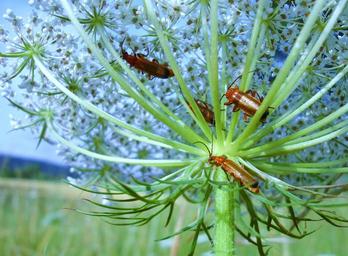 Keywords: beetle meadow insect wild carrot nature close up view