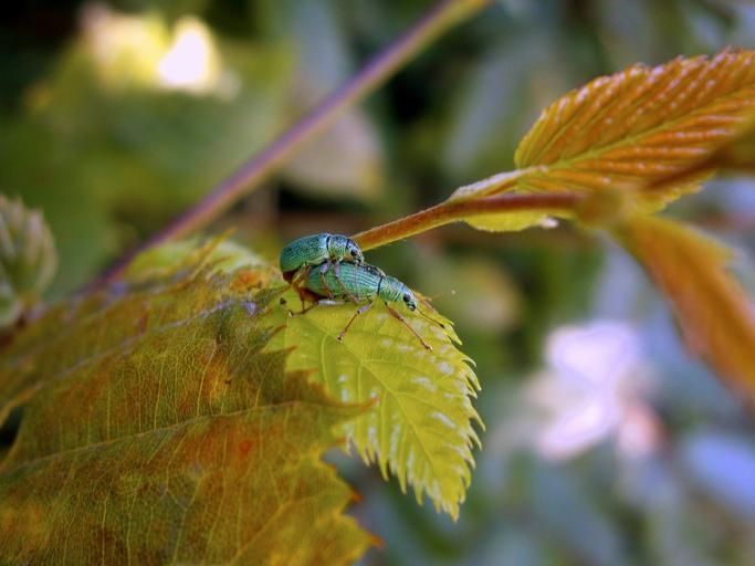 Keywords: beetle weevils green phyllobius green rachael polydrusus insect pest animals creature pairing sex love nature reproduction pair partner witness young pleasure close