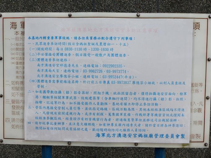 Keywords: Befangao Jingan Temple Visit Note 20130504.jpg zh-tw 海軍蘇澳基 北方澳 安宮參訪注意事項 Own 玄史生 2013-05-04 Befangao Jingan Temple Documents of Taiwan 玄史生写 文庫 Taken with Leica V-Lux 4 Cc-zero
