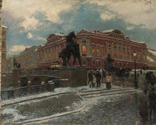 | Keywords: Beggrow 016.jpg Alexander Karlovich Beggrov 1841-1914 View of the Anichkov Bridge in St Petersburg Александ Ка лович Бегг ов 1841-1914 Вид на Аничков мост в Санкт-Пете бу ге Location частное соб ание <br> Dimensions 79 5х100 5 cm <br> Web source http //www 1st-art-gallery com/Aleksandr-Karlovich-Beggrov/View-Of-The-Anichkov-Bridge-In-St -Petersburg html <br> Technique oil on canvas < 1914 creator Alexander Karlovich Beggrov PD-old-auto 1914 Alexander Karlovich Beggrov Anichkov bridge 18th-20th century Beloselsky-Belozersky Palace |