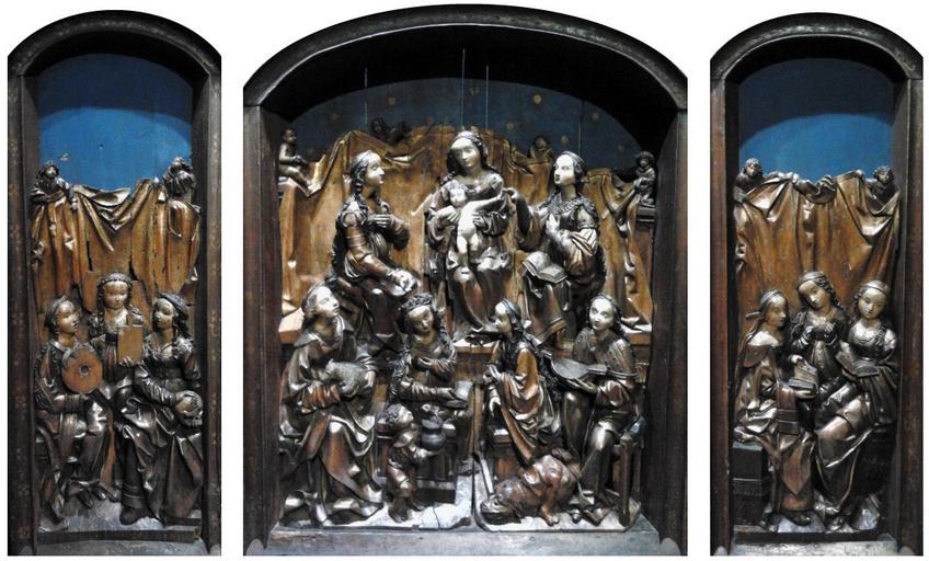 Keywords: Beinhart Triptych of the Saint Virgins.jpg Artwork Creator Jacob Beinhart 1505 polychromy gilt wood Institution National Museum Warsaw 0 accession number Śr 115 object history credit line Retable from the Capuchin Cloister in Nysa/Neissen place of origin unknown own Cc-zero DEFAULTSORT 1505; Triptych of the Saint Virgins Triptych of the Saint Virgins NMW |