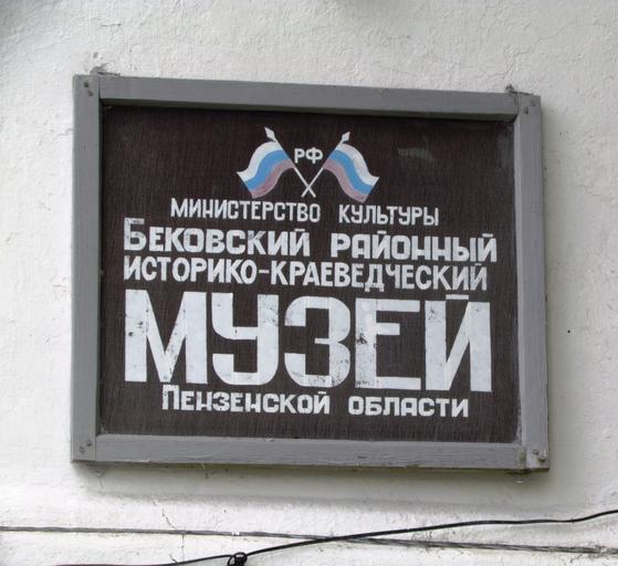 | Keywords: Bekovo 2015 Bekovo District Local History Museum 02.JPG en Bekovo 2015 Bekovo District Local History Museum ru Бековский айонный исто ико-к аеведческий музей табличка 2015-06-12 14 10 41 own Nikolay Omonov other versions а фото cc-by-sa-4 0 а текст PD-textlogo а гос символику РФ PD-RU-exempt History of Bekovo Local museums Local museums in Russia | ||||