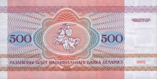 Keywords: Belarus-1992-Bill-500-Reverse.jpg be 500 ублёў 500 roubles of Belarus 1992 es 500 rublos 500 ублей Бело уссии 1992 own scan 1992 National Bank of Republic of Belarus ациональный банк Республики Бела усь ацыянальны Банк Рэспублiкi Бела усь PD-BY-exempt banknotes Banknotes of Belarus 1992 Banknotes with a face value of 500 Pahonia on banknotes |