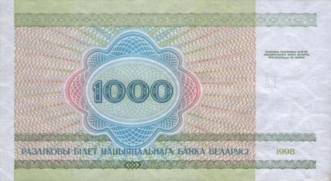Keywords: Belarus-1998-Bill-1000-Reverse.jpg be 100 000 ублёў 1000 roubles of Belarus 1998 es 100 000 rublos 1000 ублей Бело уссии 1998 own scan 1998 National Bank of Republic of Belarus ациональный банк Республики Бела усь ацыянальны Банк Рэспублiкi Бела усь PD-BY-exempt banknotes Banknotes of Belarus 1994-1999 Banknotes with a face value of 1000 1998 banknotes |