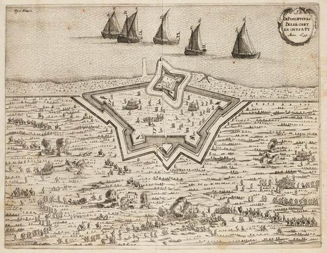 Keywords: Beleg en ontzet van de schans Philippines - Siege and relieve of the fort Philippines in 1635.jpg en Depiction of the siege and relieve of the fort Phillipines in 1635 nl De Philippines Beleegert en Ontsett Anno 1635 Fredrick Hendrick van Nassauw Prince van Orangien zyn leven en Bedryf Legermuseum Delft Signature 00102288/013 Jacob Braat printer Gerrit Nieuwenhuysen and the widow of Esdras Willemsz Snellaert publishers 1652 PD-old-100 Siege by Frederick Henry 1635 Philippine Conflicts in 1635 Eighty Years' War in Zeeland Prints in the Legermuseum Delft |