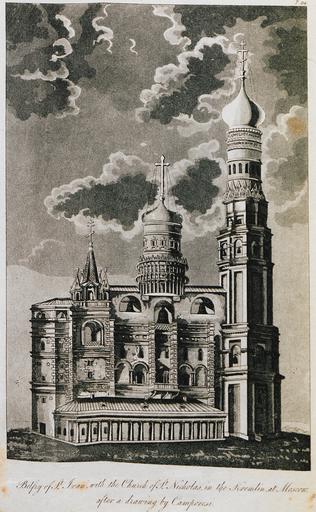 | Keywords: Belfry of St Ivan, with the Church of St Nicholas, in the Kremlin, at Moscow - Clarke Edward Daniel - 1810.jpg en Edward Daniel Clarke Travels in various countries of Europe Asia and Africa Part the First Russia Tartary and Turkey 1810 Part the Second Greece Egypt and the Holy Land 1813 London R Watts for Cadell and Davies 1813 http //eng travelogues gr/collection php view 159 Creator Edward Daniel Clarke other versions Custom license marker 2016 04 16 PD-old PD-1996 Travels in various countries of Europe Asia and Africa 1813 in Moscow Historical images of Ivan the Great Bell Tower |