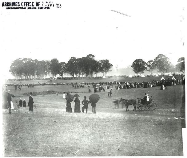 | Keywords: archives state records nsw staterecordsnsw newsouthwales blackandwhite military soldiers military camp militarycamp horse and cart horseandcart women tents outdoor black and white Believed to be NSW volunteers Easter Encampment at Windsor April 1884 - spectators watching soldiers Dated: April 1884 Digital ID: 4481_a026_000691 Series: NRS 4481 Glass Negatives Government Printing Office [prints from] Rights: www.records.nsw.gov.au/about-us/rights-and-permissions We'd love to hear from you if you use our photos. Many other photos in our collection are available to view and browse on our website using Photo Investigator. Believed to be NSW volunteers Easter Encampment at Windsor April 1884 - spectators watching soldiers Dated: April 1884 Digital ID: 4481_a026_000691 Series: NRS 4481 Glass Negatives Government Printing Office [prints from] Rights: www.records.nsw.gov.au/about-us/rights-and-permissions We'd love to hear from you if you use our photos. Many other photos in our collection are available to view and browse on our website using Photo Investigator. |