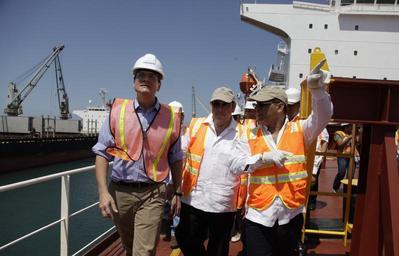 Keywords: Autoridades visitaron el Bellemar, que transportará azúcar salvadoreña a China Continental. Vicepresidente de la República, Oscar Ortíz (primero a la derecha) hace un recorrido en la embarcación. le acompañan Mario Salaverría, presidente de la Asociación Azucarera de El Salvador y Nelson Vanegas, presidente de CEPA. Autoridades visitaron el Bellemar, que transportará azúcar salvadoreña a China Continental. Vicepresidente de la República, Oscar Ortíz (primero a la derecha) hace un recorrido en la embarcación. le acompañan Mario Salaverría, presidente de la Asociación Azucarera de El Salvador y Nelson Vanegas, presidente de CEPA. |