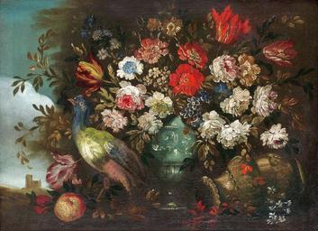 View Original:Belvedere,_Abate_Andrea_-_Stilleben_med_blommor_och_påfågel.jpg (2704x1961)