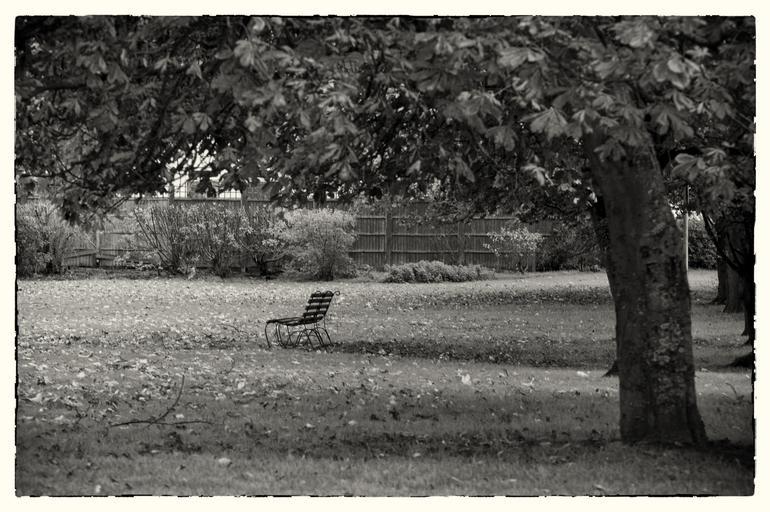 Keywords: bench park park bench outdoor grass seat tree autumn peaceful season nature