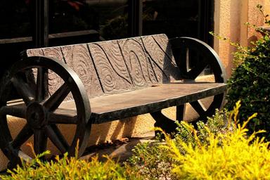 Keywords: bench wooden wheels wood rest seating rural seat sit handmade furniture