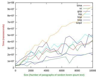 | Keywords: Benchmark common compression formats - Decompressing speed.svg en This is a comparison of popular compression formats by how many nanoseconds it takes to decompress each format The horizontal scale shows number or paragraphs containing random lorem ipsum text 2011-09-07 own AzaToth Following script was used to make the plots They where run on a mounted tmpfs dir <source lang bash > /bin/bash rm -f compress decompress factor for testnum in seq 0 500 10000 ; do lorem -p testnum > data for archiver in bzip2 lzma xz gzip lzip lzop lrzip; do case archiver in bzip2 suffix bz2;; lzma suffix lzma;; xz suffix xz;; gzip suffix gz;; lzip suffix lz;; lzop suffix lzo;; lrzip suffix lrz;; esac cp data current- testnum s1 stat -c s current- testnum c date + s N archiver current- testnum d date + s N total echo d- c bc echo testnum total >> archiver compress s2 stat -c s current- testnum suffix factor echo scale 10; s1/ s2 bc echo testnum factor >> archiver factor rm -f current- testnum c date + s N archiver -d current- testnum suffix d date + s N total echo d- c bc echo testnum total >> archiver decompress rm -f current rm -f bz2 lzma gz xz lzo lz lrz done done gnuplot < echo set terminal svg;set ylabel 'Time nanoseconds ' textcolor lt 1; set xlabel 'Size Number of paragraphs of random lorem ipsum text ' textcolor lt 2;plot 'lzma compress' title 'lzma' with lines 'xz compress' title 'xz' with lines 'gzip compress' title 'gzip' with lines 'lzip compress' title 'lzip' with lines 'lzop compress' title 'lzop' with lines 'lrzip compress' title 'lrzip' with lines 'bzip2 compress' title 'bzip2' with lines > compress svg gnuplot < echo set terminal svg;set ylabel 'Time nanoseconds ' textcolor lt 1; set xlabel 'Size Number of paragraphs of random lorem ipsum text ' textcolor lt 2;plot 'lzma decompress' title 'lzma' with lines 'xz decompress' title 'xz' with lines 'gzip decompress' title 'gzip' with lines 'lzip decompress' title 'lzip' with lines 'lzop decompress' title 'lzop' with lines 'lrzip decompress' title 'lrzip' with lines 'bzip2 decompress' title 'bzip2' with lines > decompress svg gnuplot < echo set terminal svg;set ylabel 'Compression factor' textcolor lt 1; set xlabel 'Size Number of paragraphs of random lorem ipsum text ' textcolor lt 2;plot 'lzma factor' title 'lzma' with lines 'xz factor' title 'xz' with lines 'gzip factor' title 'gzip' with lines 'lzip factor' title 'lzip' with lines 'lzop factor' title 'lzop' with lines 'lrzip factor' title 'lrzip' with lines 'bzip2 factor' title 'bzip2' with lines > factor svg </source> cc-zero Uploaded_with_UploadWizard Gnuplot_diagrams Images with BASH source code |