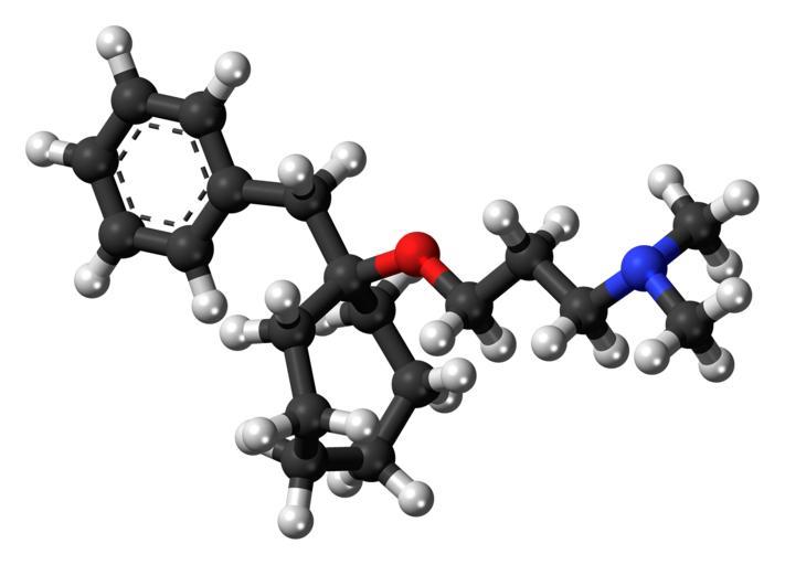 Keywords: Bencyclane 3D ball.png Ball-and-stick model of the bencyclane molecule a calcium channel blocker Color code 505050 Carbon C black<br> F0F0F0 Hydrogen H white<br> F51E1E Oxygen O red<br> 3C50FA Nitrogen N blue<br> 2011-07-30 own DS Visualizer Jynto talk Space-filling version cc-zero Bencyclane Images by Jynto Ball-and-stick models |