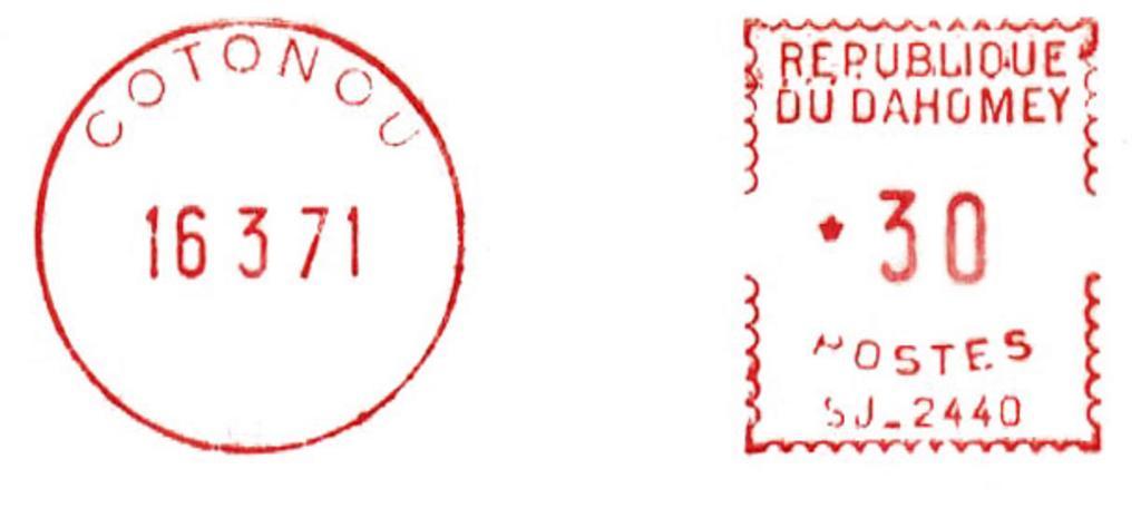 Keywords: Benin A3.jpg en Meter stamp catalog image Benin type A3 Richard Stambaugh Richard Stambaugh 2009-09-17 Meter stamps of Benin