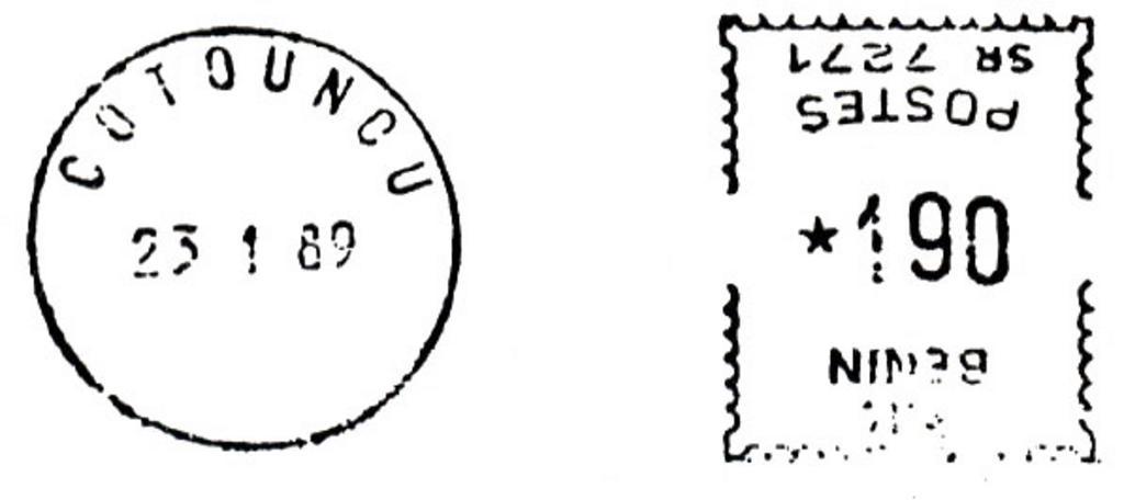 Keywords: Benin B1b.jpg en Meter stamp catalog image Benin type B1b Richard Stambaugh Richard Stambaugh 2009-09-17 Meter stamps of Benin
