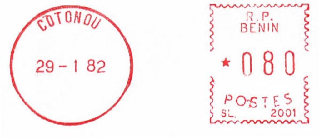 Keywords: Benin B4.jpg en Meter stamp catalog image Benin type B4 Richard Stambaugh Richard Stambaugh 2009-09-17 Meter stamps of Benin