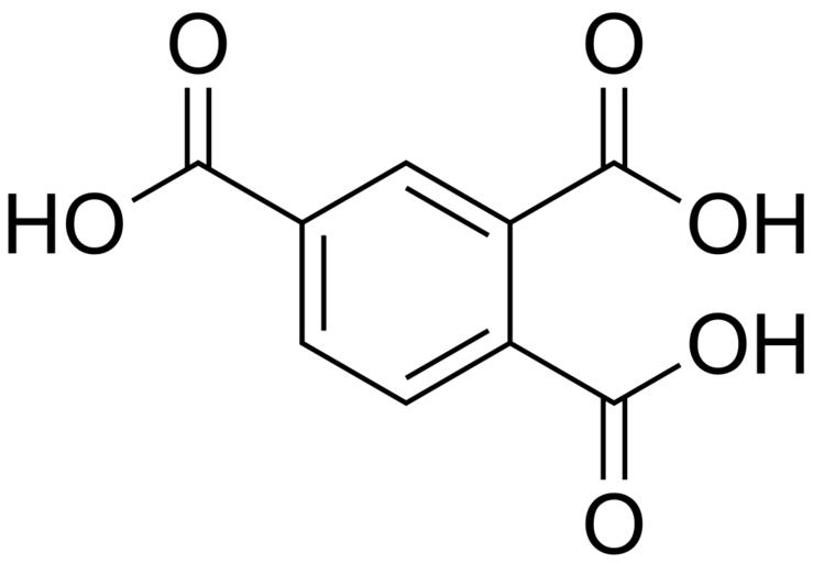 Keywords: Benzene-1,2,4-tricarboxylic acid 200.svg validSVG Structure of benzene-1 2 4-tricarboxylic acid Struktur von Benzol-1 2 4-tricarbonsäure Own 2014-04-07 Emeldir <span class signature-talk >talk</span> Chemical structure verified https //upload wikimedia org/wikipedia/commons/a/ad/Benzene-1 2C2 2C4-tricarboxylic_acid_200 svg 1S/C9H6O6/c10-7 11 4-1-2-5 8 12 13 6 3-4 9 14 15/h1-3H H 10 11 H 12 13 H 14 15 ARCGXLSVLAOJQL-UHFFFAOYSA-N 528-44-9 208-432-3 PD-chem Benzenetricarboxylic acids |