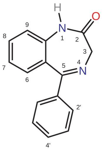 Keywords: Benzodiazepine3.svg en Core structure of the benzodiazepine ring system Own Boghog2 Benzodiazepines