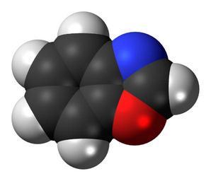 | Keywords: Benzoxazole-3D-spacefill.png Space-filling model of the benzoxazole molecule a nitrogen-oxygen heterocycle and a simple aromatic ring Colour code 505050 Carbon C black<br> F0F0F0 Hydrogen H white<br> F51E1E Oxygen O red<br> 3C50FA Nitrogen N blue<br> 2011-02-10 own DS Visualizer Jynto talk Ball-and-stick version cc-zero Benzoxazole Images by Jynto Space-filling models | ||||