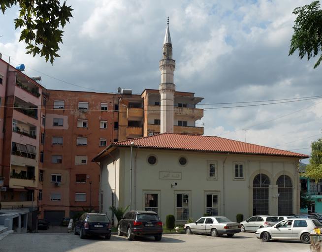 Keywords: Berat Xhamia Sahatit.jpg en Mosque in Berat Albania de Xhamia e Sahatit Berat own Albinfo 2015-10 Mosques in Berat Ottoman mosques in Albania Mercedes-Benz vehicles in Albania Cc-zero